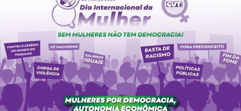 Por isso, o lema deste 8 de Março para a CUT é “sem mulher não tem democracia”. Além disso, outras bandeiras defendidas tanto pela CUT como para o conjunto dos movimentos sociais são o combate à fome, a todas as formas de violência, trabalho digno, combate ao racismo e aos preconceitos, combate à LGBTQIA+fobia, fim da fome e, em especial, por autonomia econômica das mulheres.
