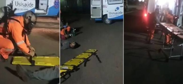 Em vídeos que circulam nas redes sociais, é possível ver trabalhadores recebendo os primeiros atendimentos de socorristas.