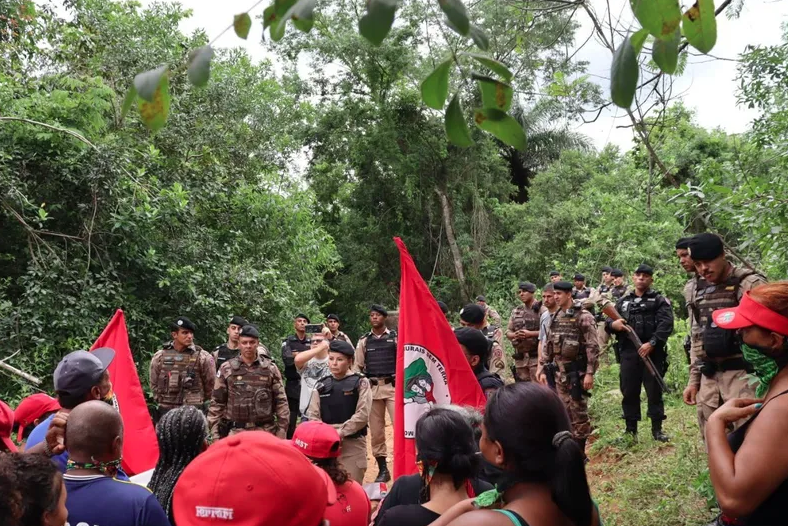 Sem ordem judicial, os policiais estão impedindo o trânsito de pessoas e autoridades que estão na ocupação. Além disso, está sendo barrada a entrada de alguns suprimentos para as 500 famílias assentadas no acampamento.