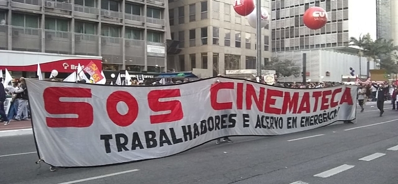 Integrantes do movimento S.O.S Cinemateca também foram à manifestação da Avenida Paulista no último sábado (24) para alertar sobre os riscos, cada vez mais iminentes, de incêndio.