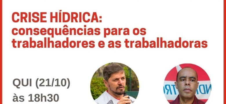 Crise Hídrica: Consequências para os trabalhadores e as trabalhadoras será a pauta da live que a CTB realiza nesta quinta-feira, a partir das 18h30. O nosso coordenador-geral, Emerson Andrada, vai compor a mesa de debate, junto com o vice-presidente da CTB e dirigente do Sintaema-SP, Rene Vicente.