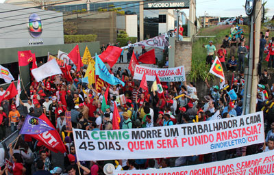 A conentração dos trabalhadores foi na Praça Sete. Foi lá o começo da passeata. Os eletricitários spassaram pelas ruas e avenidas do Centro de Belo Horizonte, pela Prefeitura de BH e pela Cemig, no bairro Santo Agostinho. Em frente à Cemig, os manifestantes fizeram grande vaia à direção da Cemig. Jairo Nogueira Filho, coordenador geral do Sindieletro, denunciou o repasse de R$4,5 bi de lucro para acionistas, enquanto população paga uma das tarifas mais caras do Brasil. Ele também lembrou que morrem 5 trabalhadores a serviço da Cemig por ano em Minas. Agora, os manifestantes caminham para a sede do Banco Central e a Assembleia Legislativa.