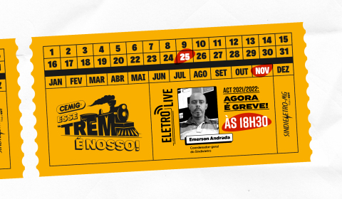 Para se organizar para a greve e tirar suas dúvidas, não deixe de assistir à Eletrolive desta quinta-feira, 25/11: estaremos ao vivo às 18h30, com nosso coordenador-geral, Emerson Andrada. A transmissão será simultânea pelo facebook.com/sindieletro e youtube.com/sindieletromgoficial. Link direto: