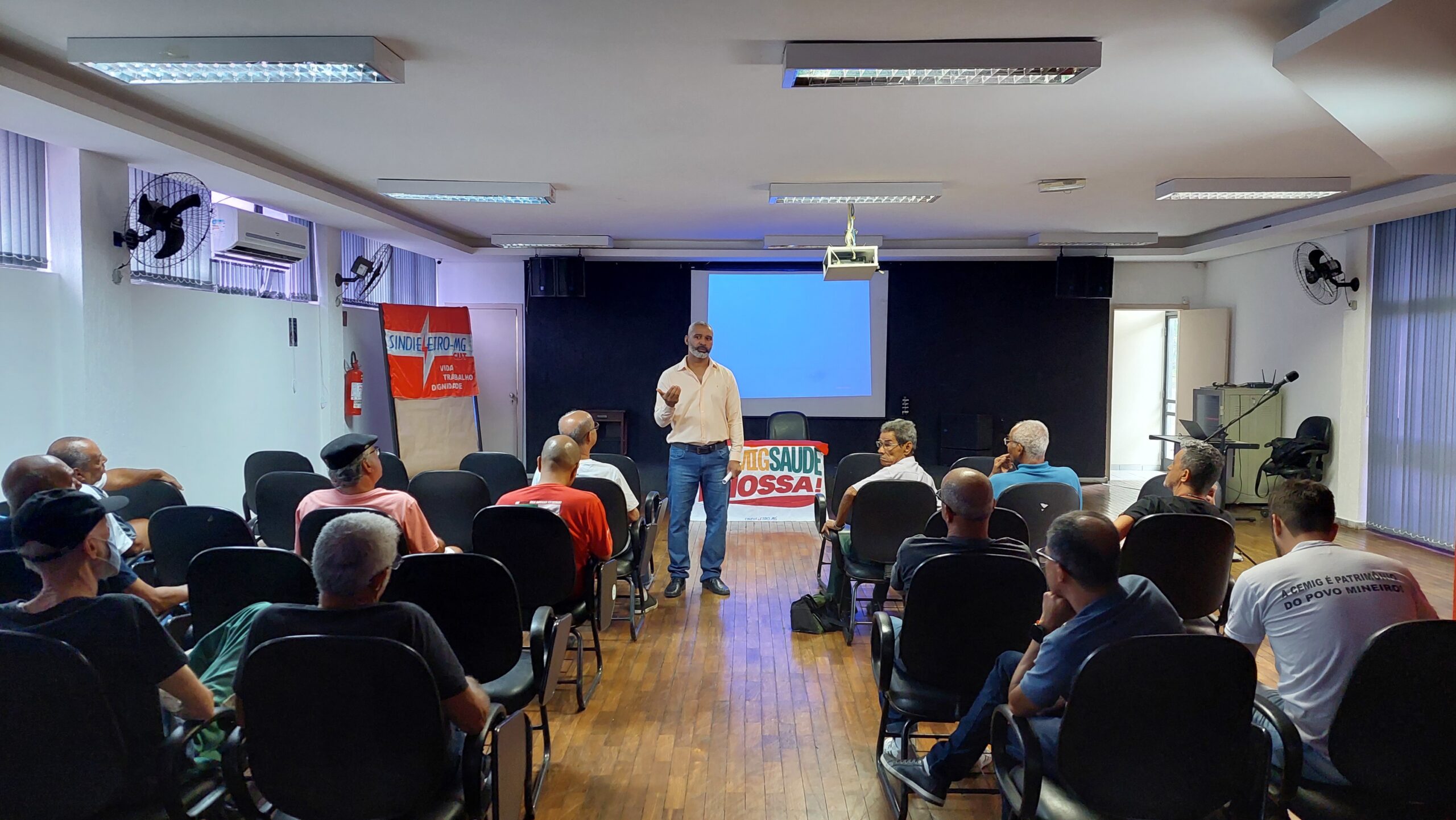 Na tarde desta quinta-feira (13), o diretor de Relações com os Beneficiários (DRB) da Cemig Saúde, Edvaldo Pereira, se reuniu com os beneficiários na sede do Sindieletro, em Belo Horizonte, para sanar dúvidas e debater sobre a saúde dos beneficiários e a longevidade do plano de saúde.