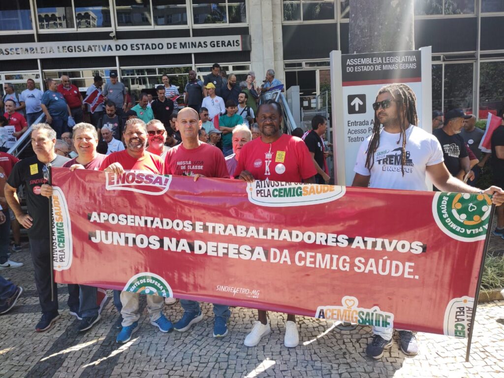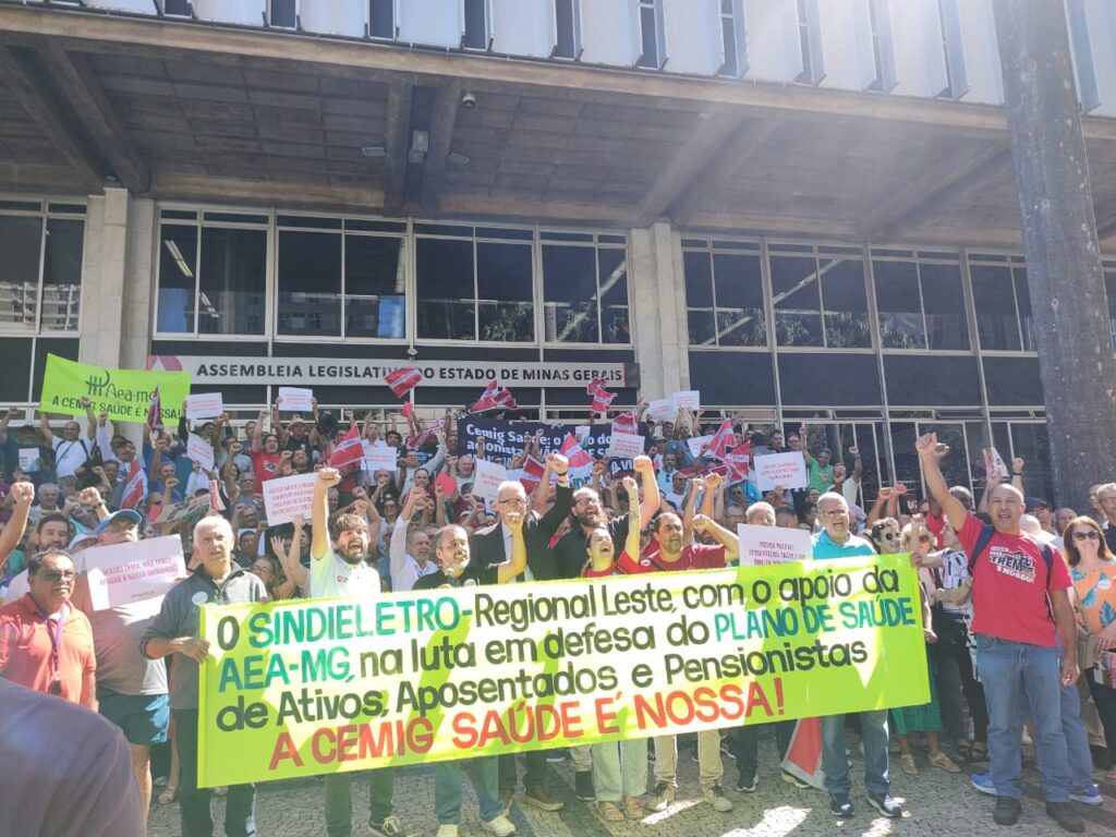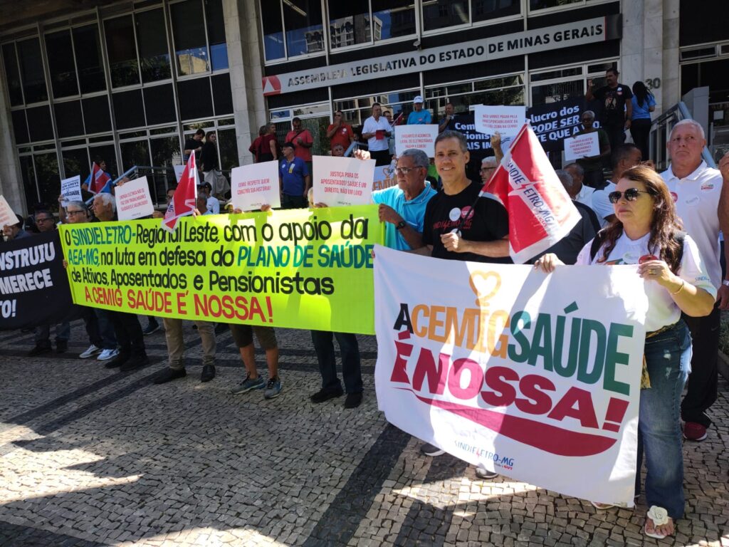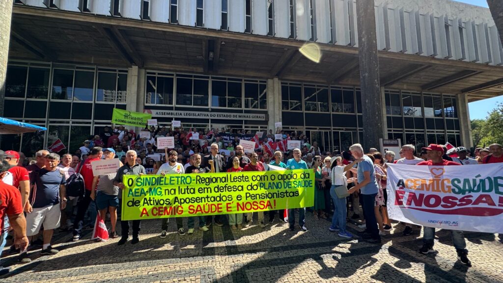 Mais um dia de luta em defesa da Cemig Saúde e do PSI reuniu uma multidão de eletricitários, tanto da ativa quanto aposentados, na sede da Cemig, atendendo à convocação do Sindieletro. O ato, realizado na terça-feira, 11 de março, e iniciado às 8h, seguiu em passeata até a Assembleia Legislativa de Minas Gerais (ALMG), onde ocorreu uma audiência pública sobre as ameaças ao plano de saúde dos trabalhadores.