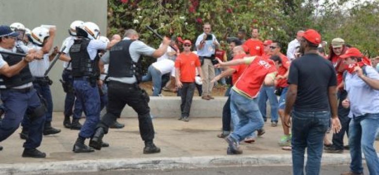 Os trabalhadores, que estão acampados na Esplanada dos Ministérios, vieram em passeata para o Congresso, onde foi permitida a entrada de 40 pessoas. O resto do grupo ficou do lado de fora, gritando slogans e pressionando para entrar. Para dispersar a manifestação, a Polícia Militar utilizou gás lacrimogênio e spray de pimenta. De acordo com o presidente da CUT, Vagner Freitas, a violência foi injustificável e poderia ter consequências graves. Ele afirmou que vai procurar a direção da Câmara para discutir o assunto.
