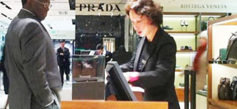 A cena em questão é do presidente do Supremo Tribunal Federal, Joaquim Barbosa, numa galeria de luxo em Paris, onde desfilam grifes como Fendi, Prada e Bottega Veneta.