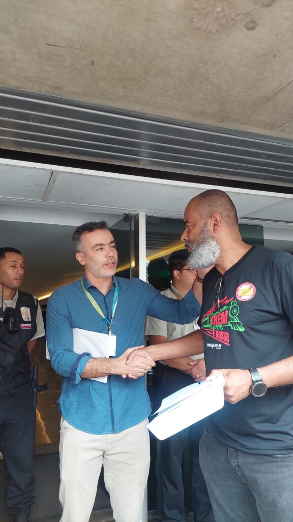 Na manhã desta quarta-feira (24), estivemos na porta da Cemig e o nosso coordenador geral, Emerson Andrada, entregou a pauta de reivindicações da categoria em mãos para o superintendente Bruno Vianna.