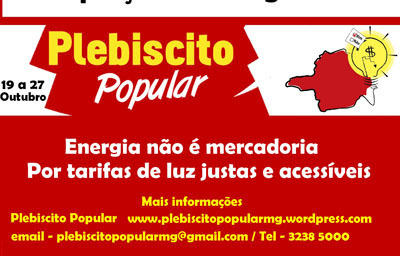 Diante dessa injustiça, várias organizações sociais e sindicais, entre elas o Sindieletro, uniram-se para realizar um plebiscito popular sobre a tarifa de energia da Cemig, em todo o Estado, de 19 a 27 de outubro. A intenção é debater formas de redução da tarifa de luz e do ICMS.