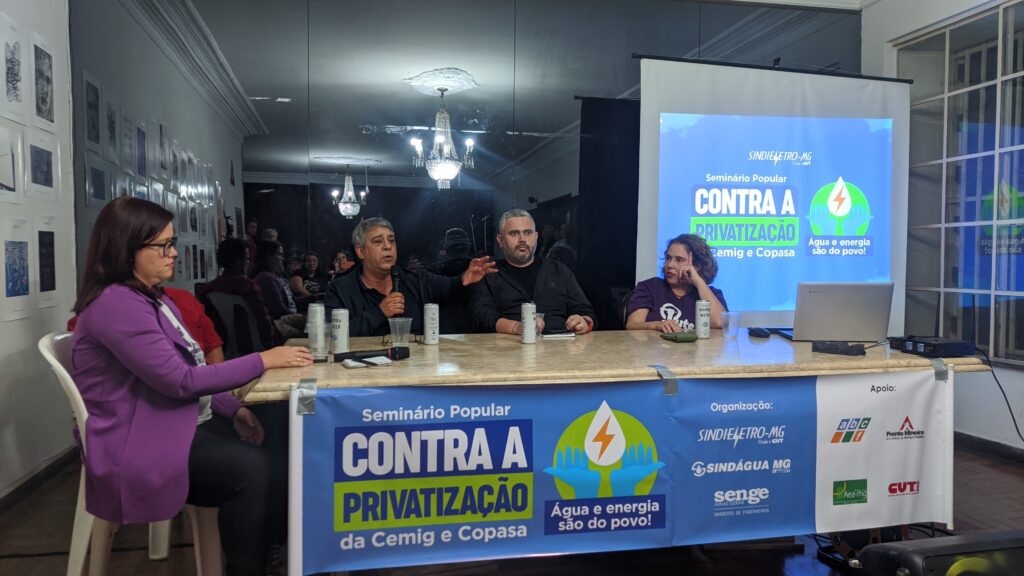 A palestra abordou os impactos sociais, econômicos e políticos de uma possível privatização da Cemig, Copasa e da Empresa Mineira de Comunicação (EMC). Os especialistas convidados destacaram que a lógica de lucro das empresas privadas é incompatível com a garantia de direitos como o acesso à água e à energia.