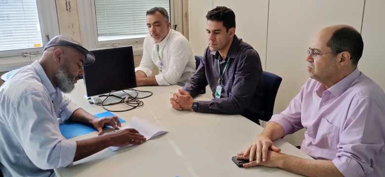 Na tarde desta terça-feira (22) o coordenador geral do Sindieletro, Emerson Andrada, entregou a pauta de reivindicações da categoria eletricitária para o ACT 2023/24 à gestão da Cemig, representada pelo diretor de Gestão de Pessoas, Hudson Félix Almeida, pelo superintendente de Gestão de Pessoas, Brunno Viana, e por João Paulo Vaz, gerente de Relações Trabalhistas e Internas. Na mesma ocasião, solicitamos a primeira reunião de negociação da campanha.