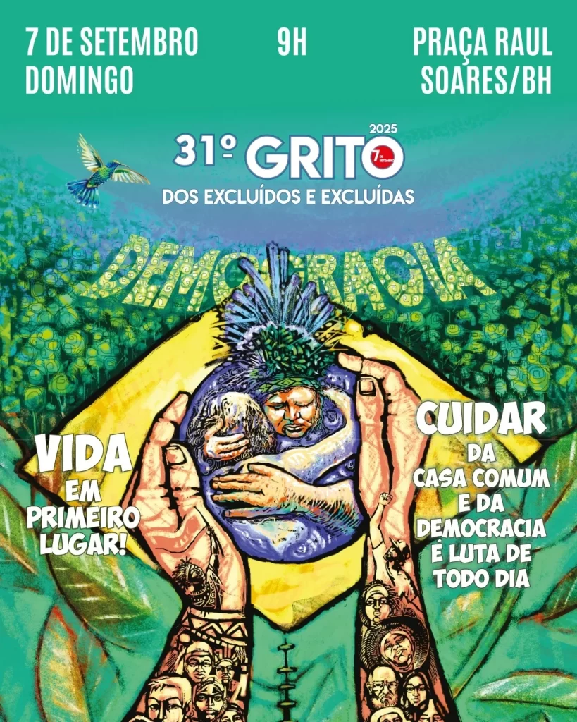 No próximo 7 de setembro, Belo Horizonte será palco de mais uma edição do Grito d@s Excluíd@s, tradicional mobilização nacional que chega à sua 31ª edição com o tema: “Cuidar da Casa Comum e da Democracia é Luta de Todo Dia!” e o lema histórico “Vida em primeiro lugar!”. A concentração acontece a partir das 9h, na Praça Raul Soares, de onde a caminhada sairá pelas ruas da capital mineira.