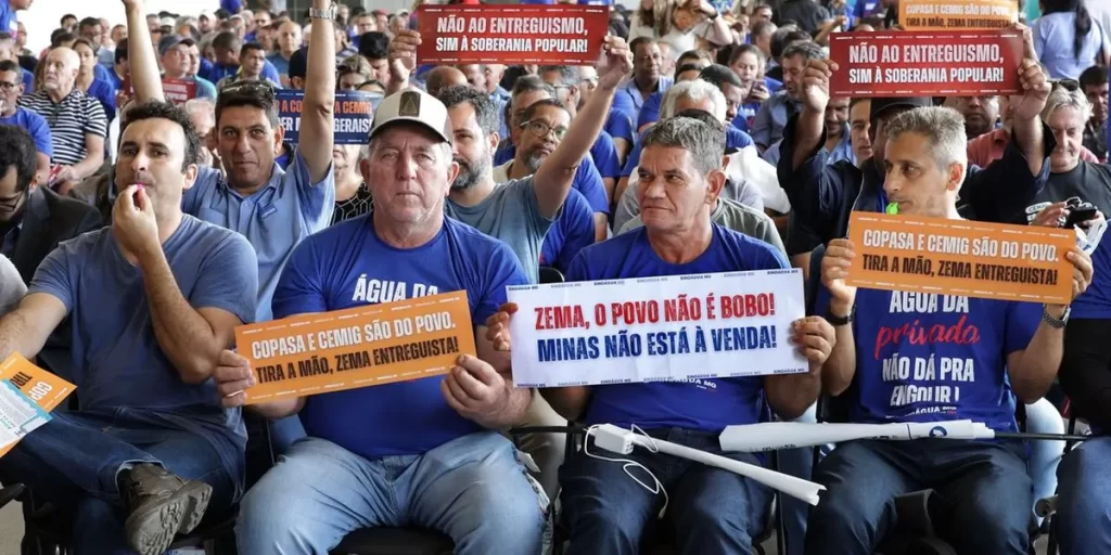 Sob gritos de “Zema ladrão, a Copasa é do povão”, trabalhadores da companhia de saneamento e da Cemig participaram nesta quarta-feira (24) de audiência pública na Assembleia Legislativa de Minas Gerais (ALMG) para denunciar possíveis impactos caso as estatais sejam privatizadas.