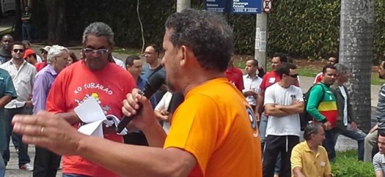 Trabalhadores se acorrentam, em um abraço solidário