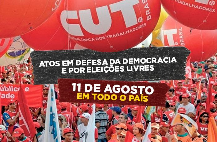 No dia 11 de agosto, será realizada a “Mobilização nacional em defesa da democracia e por eleições livres”, organizada pela CUT, centrais sindicais, movimentos populares, partidos políticos, estudantes e outras entidades da sociedade civil.